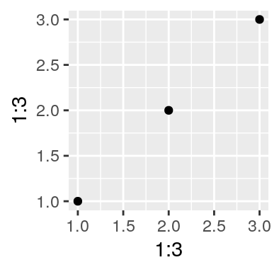 qplot(1:3, 1:3) + coord_equal()