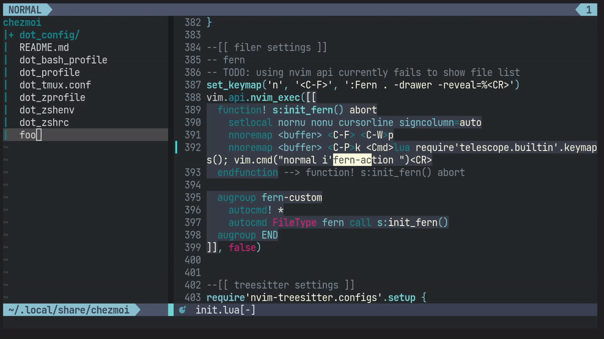 FernはVim/Neovim向けのファイラーで、外部依存がなくパフォーマンスも良好なので、好んで使っています。