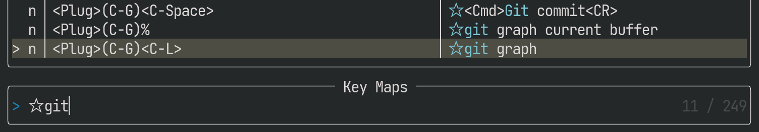 :Telescope keymapsを使ったコマンドパレットは便利ですが、マッピングによっては検索性に難があります。