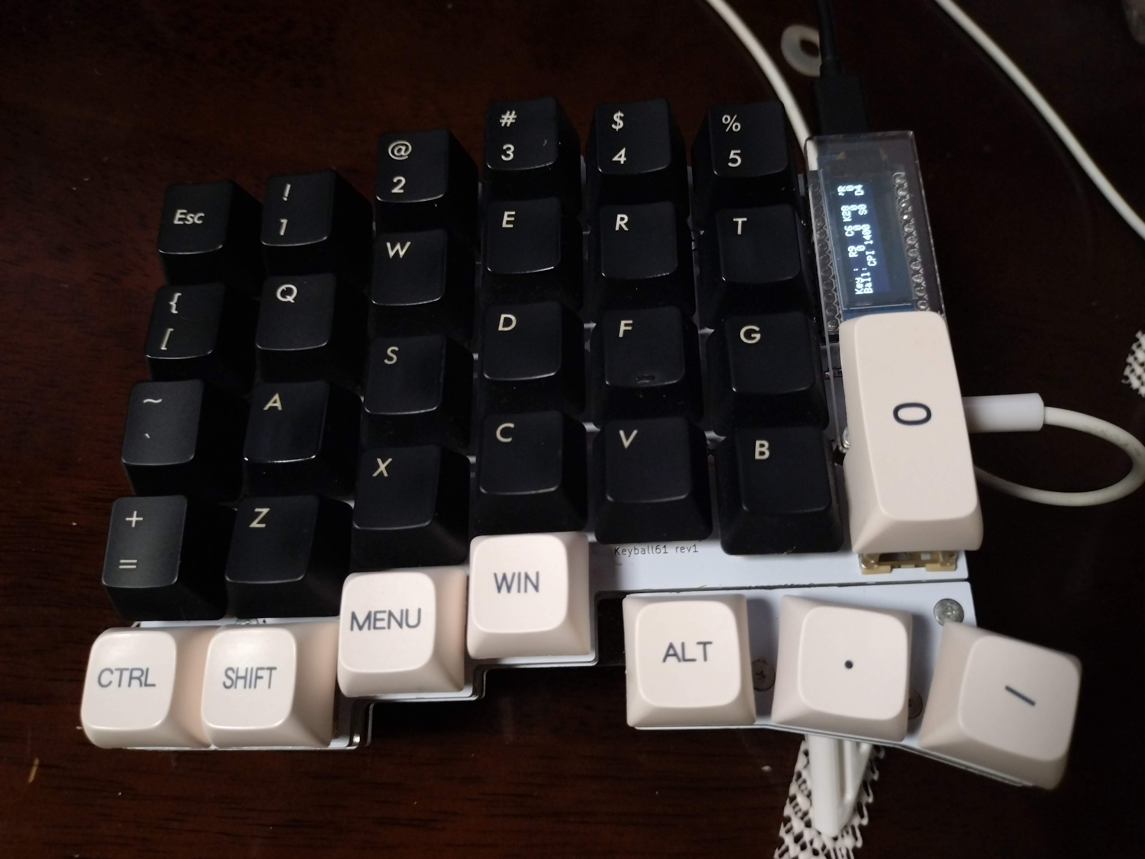 通常、最も内側のキーには1uのキーキャップをつけるが、私はキーキャップを加工して、2uのキーキャップをつけている(画像の0の部分)。